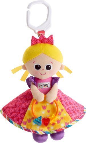 Royalty never looked or felt so good as Princess Sophie. She holds her jewel clacking beads in her hands for baby to play with, and her skirt crinkles to keep baby's interest. Her bold colors and contrast prints help with visual stimulation and development. The high contrast patterns stimulate vision. It crinkles for auditory development. This is the perfect for baby's first doll. The bold colors and contrast prints help with visual stimulation and development. Lamaze makes a great for your baby.