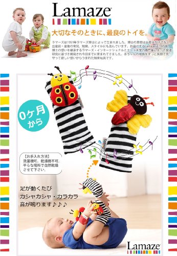 出産祝いベビーギフト!Lamazeラマーズおむつケーキ! ラマーズの可愛いフットラトル♪☆!かわいいムシさん達といつでも一緒。 ソックスをはいたベビーの足を持ち上げて、虫さんとおはなし。腹筋、背筋の運動にも◎☆黒白赤黄のコントラストのはっきりした色使いで生後まもないお子様の視覚の発達をサポート! 大切なそのときに、最良のトイを・・・! 【お手入れ方法】 洗濯機可。乾燥機不可。平らな場所で自然乾燥させて下さい。 赤ちゃんにとって実用的な出産祝いとなっております。