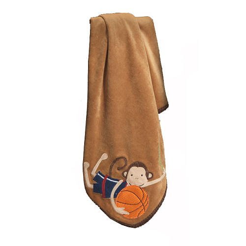 Brown plush blanket with monkey and basketball applique;Blanket measures 30x 40;100% polyester