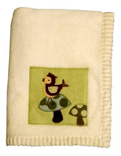 - Lambs and Ivy Enchanted Forest Plush Blanket, Cream With Green Inset