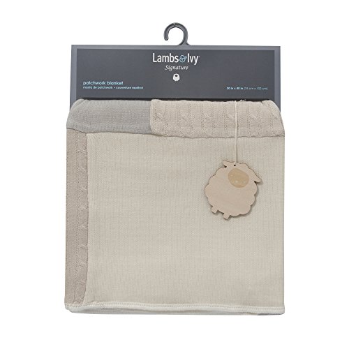 - Lambs & Ivy Signature Sweater Knit Patckwork Blanket, Oatmeal