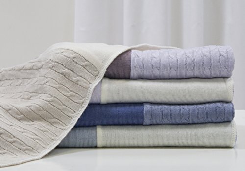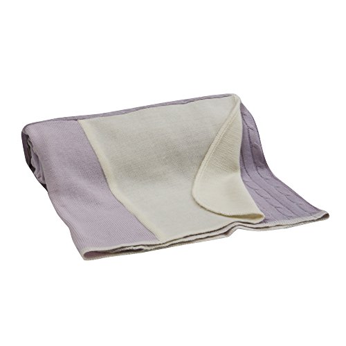 A patchwork of gorgeous sweater knits with the look and feel of cashmere Baby will love cuddling up to this exquisite lilac colored blanket;Measures 30 x 40 and is made of 100% cotton 100% acrylic;Care instructions: machine wash cold with like colors in gentle cycle, do not bleach Tumble dry low