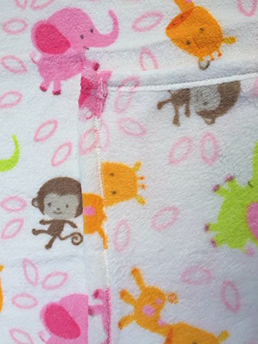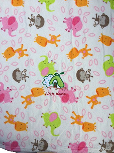 Dimensions : 30x 40 coral fleece blanket;Machine wash cold in gentle cycle with like colors, do not bleach, tumble dry warm, do not iron;100% soft polyester;Extra Soft;Features an applique of Little House surrounded by green/pink elephants, orange giraffes and monkeys