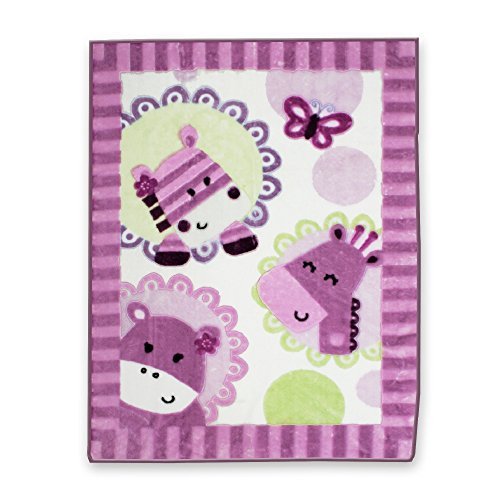Lambs & Ivy Hopscotch Jungleウォーム&コージーブランケット/毛布 友達の輪 ピンク/パープル/ホワイト
