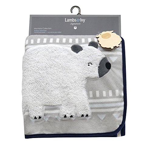 Lambs & Ivy署名モンタナブルー/グレー/ホワイトBearベロア/シェルパブランケット