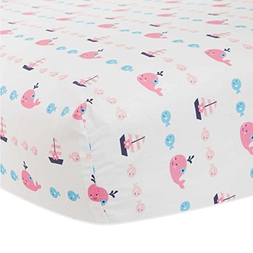 100% Cotton, Allover Print of Roxy the Whale with Aailboats & Fishes Fitted Crib Sheet by Lambs & Ivy