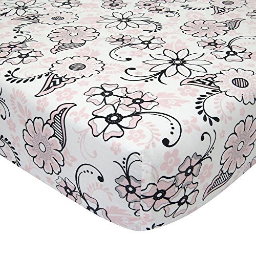 Lambs & Ivy Duchess Floral Fittedベビーベッドシート – ピンク/ブラック