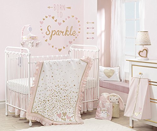 Dreams really do come true with this luxurious nursery. Exquisite details of metallic hearts, soft ruffles, and golden appliques decorate this charming collection. From cascading hearts to trendy arrows and sweet little bunnies, this is the perfect bedding for your little princess.