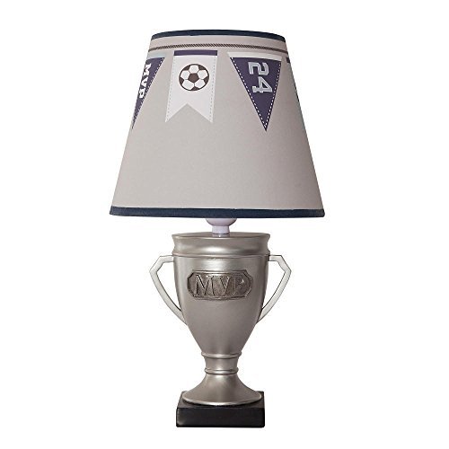 バーシティランプBabies R Us専用設計されていました。この独自のトロフィーランプはあなたの赤ちゃんの保育園に光ります。ポリレジンのランプはシルバー、マット仕上げは、チャコールベース上では、でMVP板です。を使用して調整された上部の回りを飾られたブルーシェードは、取り合わせのペナント(曖昧さ回避)。配慮した親を含むこのランプシェードは、エネルギー効率の良い電球での17インチを測定。インポートされました。