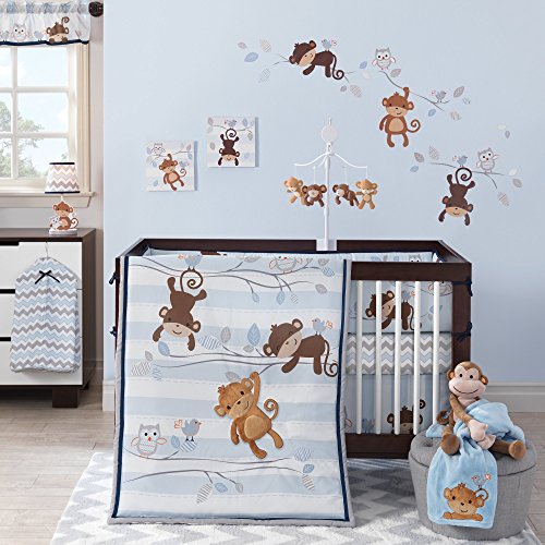 Our perfect fit bumper is double sided and features monkeys and owls on both sides. The coordinating 24 ties will help you secure the bumper to the crib. Bumper measures 157 long x 10 tall.;The coordinating 24 ties will help you secure the bumper to the crib. Bumper measures 157 long x 10 tall.;Care instructions: machine wash cold with like colors in gentle cycle, do NOT bleach, tumble dry low, and iron on lowest setting as needed.