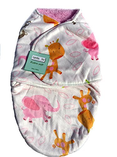 Lambs & Ivy Baby Swaddle Blanket, Micro Plush Fleece with Sherpa Backing Swaddle, Extra Soft, Easy Velcro Wrap, Pink Elephant and Giraffe Theme - 0-3 Months by Lambs & Ivy [並行輸入品]