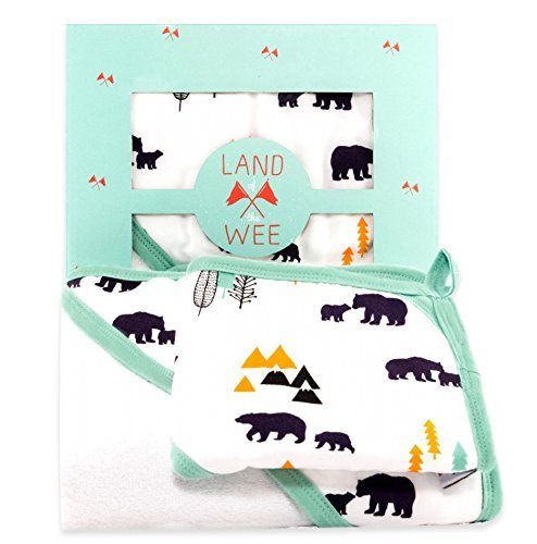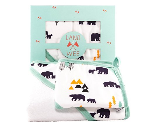 ABSOLUTE SOFTEST BABY TOWEL: You'll feel the quality thickness and silky softness of our premium 100% bamboo terry towel right out of the box. Bamboo is also a more absorbent choice, which means your little one gets warm and dry quicker after a soak in the bath tub. Bamboo fabric has been shown to have up to a 60% higher absorbency than cotton.;RECOMMENDED FOR DELICATE / SENSITIVE / DRY SKIN- Eczema, baby acne, allergies and cradle cap are often challenges for newborn baby skin. Our towel and washcloth is hypoallergenic, anti-bacterial, anti-fungal and anti-static and can help nurture and soothe your baby.;ORGANIC - Natural antibacterial properties allow the eco-friendly super plant bamboo to thrive in nature without the use of pesticides, herbicides, or fertilizers;GENEROUS SIZE & FUNCTIONAL DESIGN - 10 x 10 inch bonus washcloth size is perfect for newborn, toddler, child and adult. The hand pocket creates a mitt and makes the washcloth much easier to hold while using and the drying loop allows for more convenient and hygienic storing between uses.;A FAVORITE BABY SHOWER GIFT / REGISTRY CHOICE - Land of the Wee hooded towel and washcloth gift set is a most loved addition to any motherhood layette collection and a perfect complimentary gift to give with an infant bathtub or bath seat, hooded towel, bathing accessories, or your favorite bath products.
