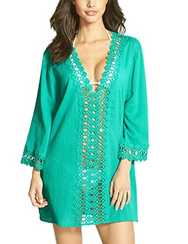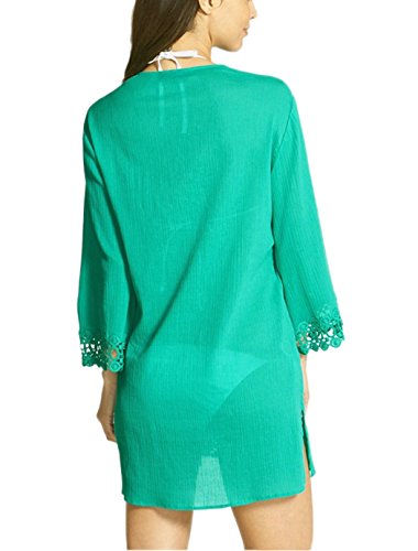 ビキニカバーアップ – landoveレディースVネックゆったりビーチシャツ長袖シフォン着物風ブラウス US サイズ: 3L カラー: グリーン