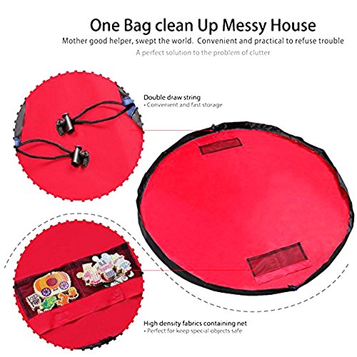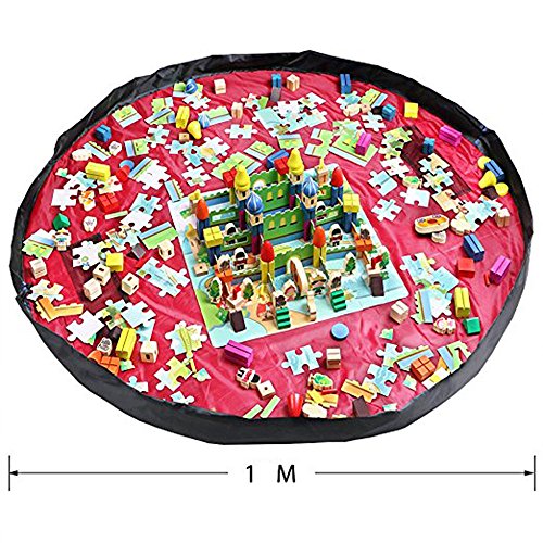 兰灵100 Cm / 39.4インチの直径でポータブルキッズおもちゃ収納バッグ遊びマットおもちゃオーガナイザーラグボックス - 特大多目的子供フロアのアクティビティマットフォールドポータブルバッグ簡単なおもちゃクリーンアップ - ローズ赤