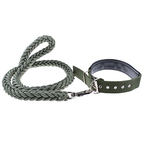 ヘビーデューティー 犬手織りナイロン 編組調整可能なメタルバックル犬の首輪 ソリッドハンドロープリーシュセットミディアムドッグまたはラージドッグ 130cm グリーン