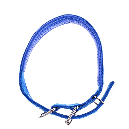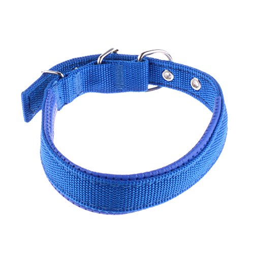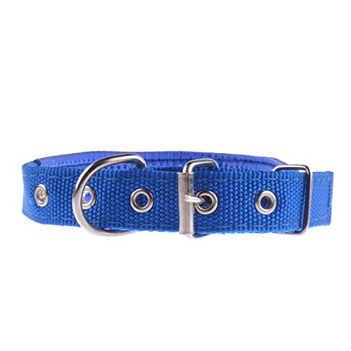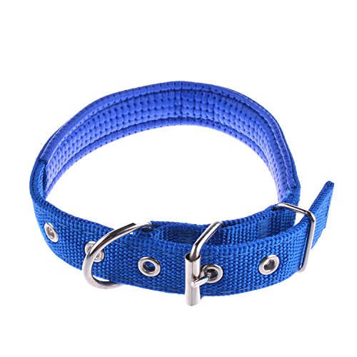 丈夫なナイロンクラシック犬の首輪ステンレススチールメタルバックル、調節可能な金属バックル犬の襟キャットペット5穴 2.5*55cm ブルー