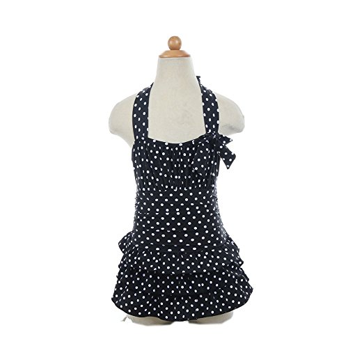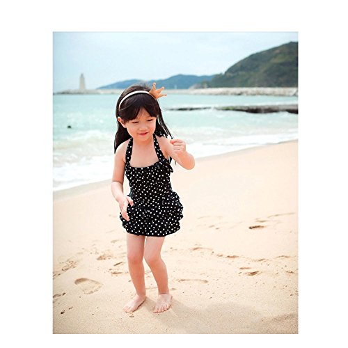 Laparc (ラパルク) 水玉 フリル 水着 ベビー キッズ ブラック レッド パープル オレンジ ( M L XL ) ワンピース (L, 黒)