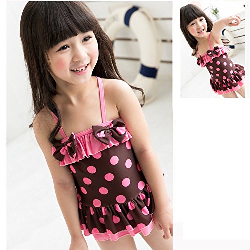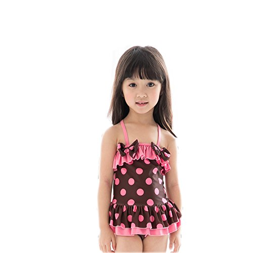 Laparc (ラパルク) 水玉 アンサンブル 水着 帽子 ベビー キッズ ブラウン ブルー ( S M L XL 2XL ) ワンピース (2XL, 茶色)