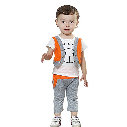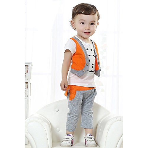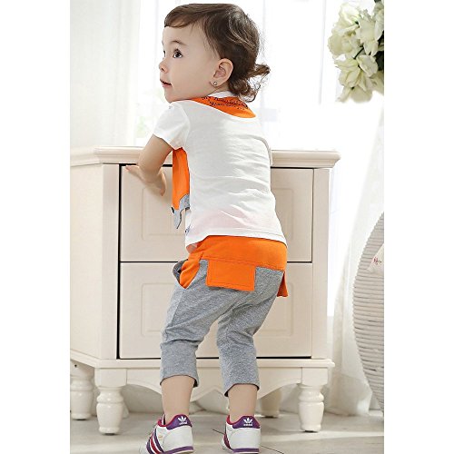 Laparc (ラパルク) アニマル アンサンブル Tシャツ ズボン ベビー キッズ ブルー オレンジ イエロー ( 80cm 90cm 100cm ) 半袖 (80cm, 橙)