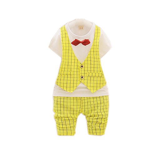 Laparc (ラパルク) チェック アンサンブル Tシャツ ズボン イエロー ベビー キッズ ( 80cm 90cm 100cm 110cm ) 半袖 (80cm)