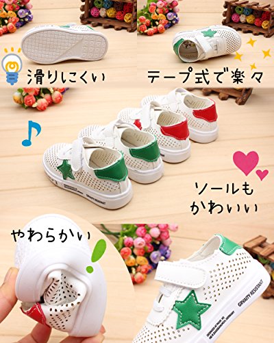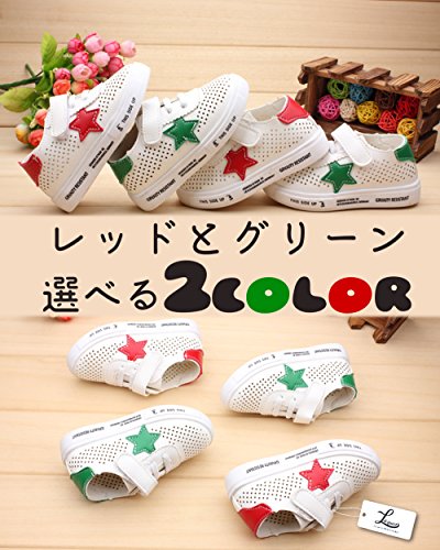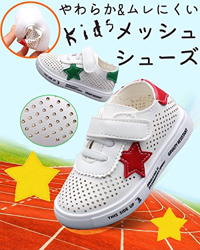 (ラクエスト) Laquest 子供靴 やわらかい メッシュ スニーカー ワンタッチ テープ シューズ 星 ベビー キッズ 男女 (13.5cm, レッド)