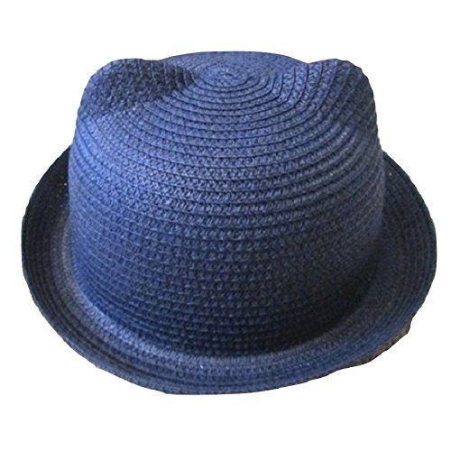 Laquest 耳付き かわいい 帽子 子供 キッズ 大人 ハット UVカット ベビー カンカン帽 (大人(56-58cm), ネイビー)