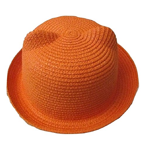 Laquest 耳付き かわいい 帽子 子供 キッズ 大人 ハット UVカット ベビー カンカン帽 (子供(50-52cm), オレンジ)