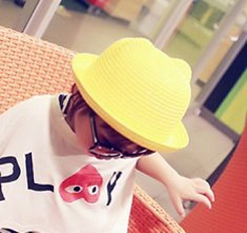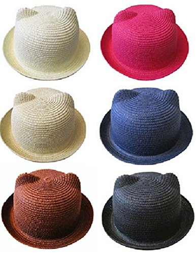- かわいいネコ耳付きの麦わら風の帽子♪折りたためます◎