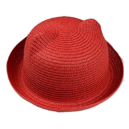 Laquest 耳付き かわいい 帽子 子供 キッズ 大人 ハット UVカット ベビー カンカン帽 (大人(56-58cm), レッド)