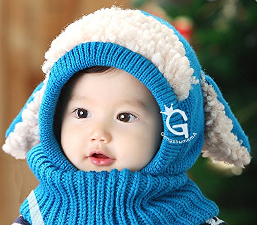 (ラクエスト) Laquest ベビー キッズ もこもこ 着ぐるみ ニット帽 ネックウォーマー (ブルー)