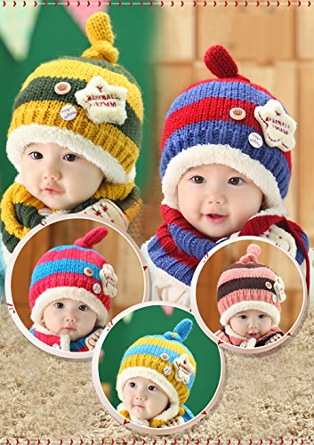 - サイズ:(ニット帽)頭囲46~52cm (マフラー)首周り49cm/年齢目安:6カ月~4歳(モデルは生後7か月です。)/素材:アクリル繊維/中国製。記載のサイズは実寸と誤差があることもあります。ご了承ください。