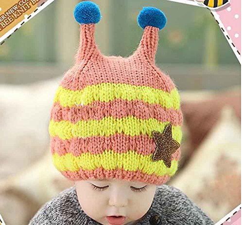 - ざっくり編みのみつばち風つのとポンポンがキュートなあったかニット帽!!
