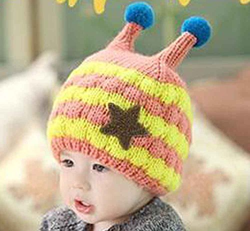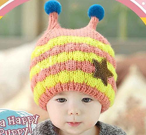 (ラクエスト) Laquest みつばち 風 ベビー ボーダー ニット キャップ (イエロー×ピンク)