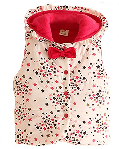 星柄とリボンがとってもキュートな、フード付き中綿入りキッズダウンベスト❤