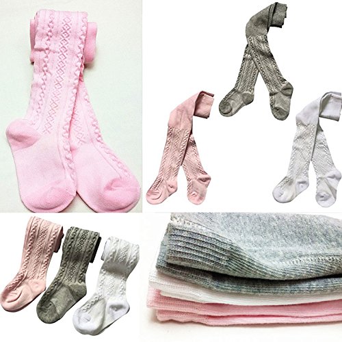 (ラランドリー) Laraandlory ベビータイツ 赤ちゃんタイツ ストッキング レギンス パンスト 無地 シンプル 3足セット(白+ピンク+グレー)(12~24ヶ月)