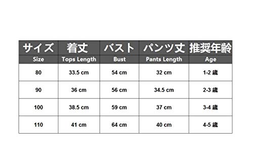 - [サイズ90]トップス 36 cm, バスト 56cm, パンツ丈 34.5 cm , 推奨年齢 2-3歳