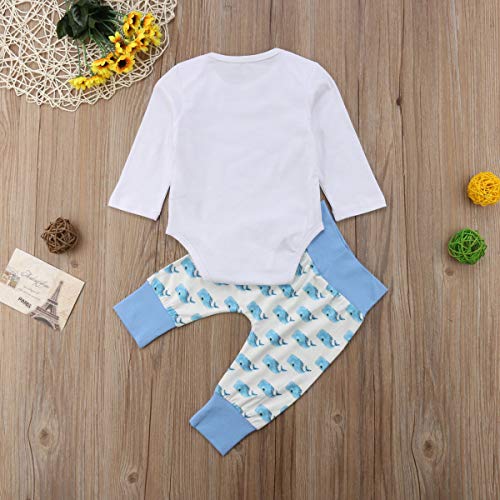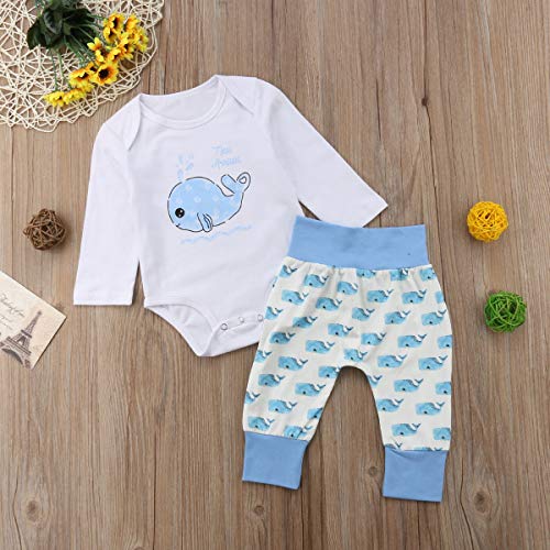 (ラランドリー) Laraandlory ベビー服 上下セット ベビーロンパース パンツ セットアップ 女の子 男の子 クジラ 長袖 2点セット(ロンパース+パンツ) 秋冬春 可愛い (90/6~9ヶ月)