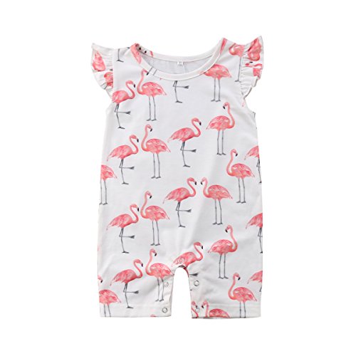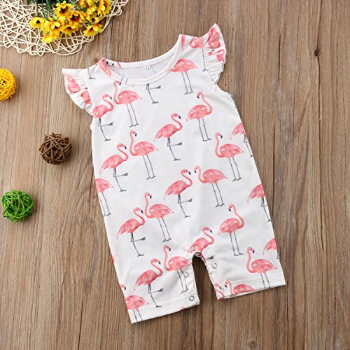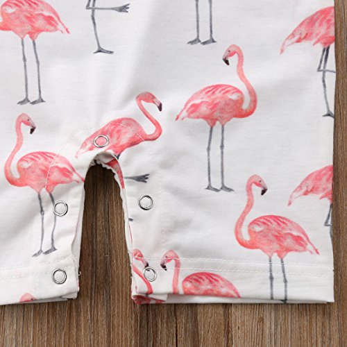 (ラランドリー) Laraandlory ベビー服 女の子 ロンパース カバーオール ショートオール フラミンゴ スナップボタン付き 出産祝い 誕生日祝い プレゼント 夏 0-24ヶ月 (70/0ー6ヶ月)