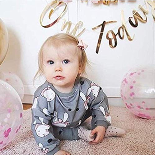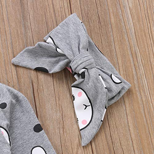 (ラランドリー) Laraandlory ベビー服セット 上下セット 女の子 男の子 長袖 ウサギ 3点セット(トップス+パンツ+ヘッドバンド) 秋冬春 可愛い (グレー 100/18~24ヶ月)