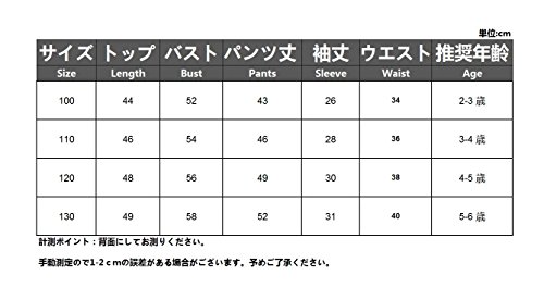 - [サイズ90]着丈 49 cm, バスト 58cm, 袖丈 31 cm, パンツ丈 52 cm, ウエスト 40 cm, 推奨年齢 18~24ヶ月