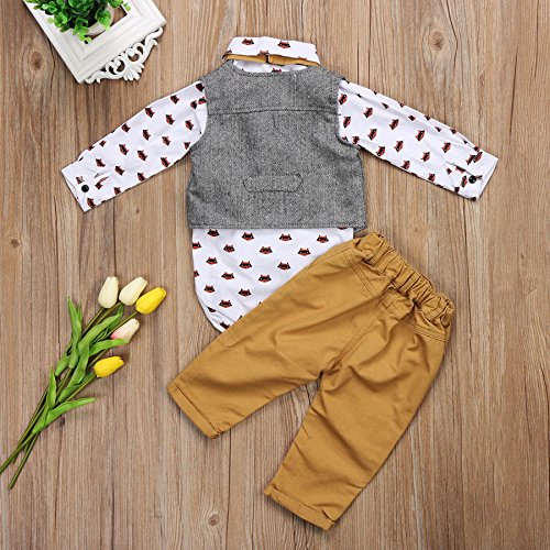(ラランドリー) Laraandlory ベビー服 男の子 ロンパースシャツ+パンツ+ベスト 可愛い 発表会 結婚式 秋春冬 (90/18~24ヶ月)