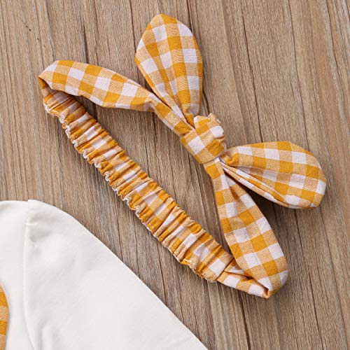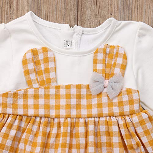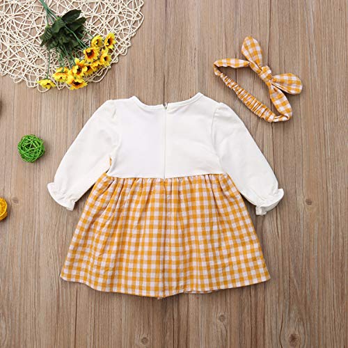 (ラランドリー) Laraandlory 新生児 ベビー ワンピース 長袖 赤ちゃん ベビー服 ドレス ウサギヘッドバンド 可愛い 出産祝い 誕生日 秋冬春 (イエロー80/3-9ヶ月)