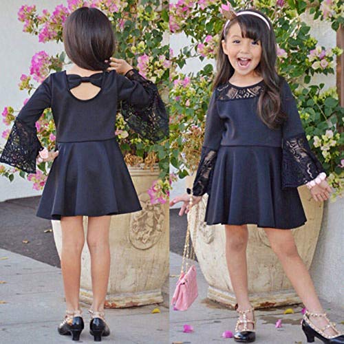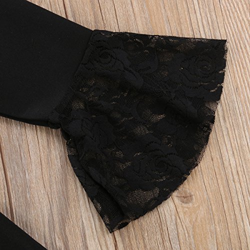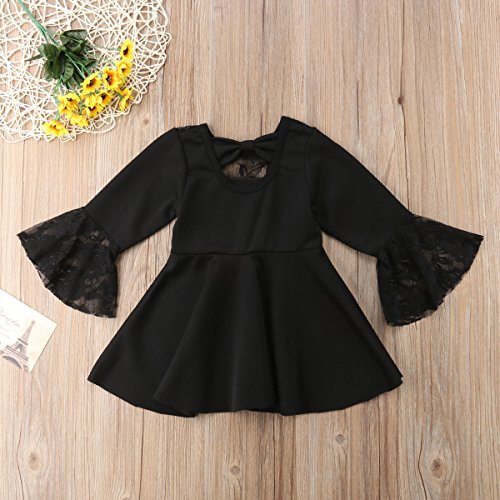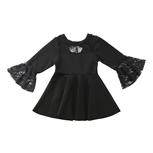 (ラランドリー) Laraandlory ベビー服 子供服 女の子 ワンピース ドレス レース ベルスリーブ 長袖 フォーマル 可愛い 結婚式 記念撮影 秋冬春 (ブラック80/6~12ヶ月)