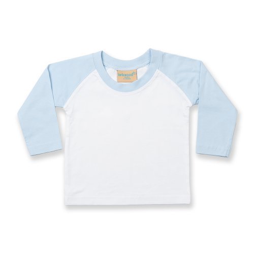 - Larkwood Baby Long Sleeved Baseball T-Shirt (18-24) (White/Pale Blue)