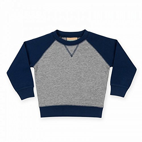 クルーネック。リブディテール。ラグラン袖部分コントラストカラー。素材:綿80、ポリエステル20%。ヘザーグレー:綿85%、ビスコース15%。サイズ:3-6ヶ月(身長62-68cm)、6-12ヶ月(身長76-80cm)、12-18ヶ月(身長80-86cm)、18-24ヶ月(身長86-92cm)、24-36ヶ月(身長92-98cm)、3-4歳(身長98-104cm)。