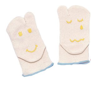 - ■足裏には、泣き顔と笑い顔のスベリ止め付き ■ 生地の厚さ/中