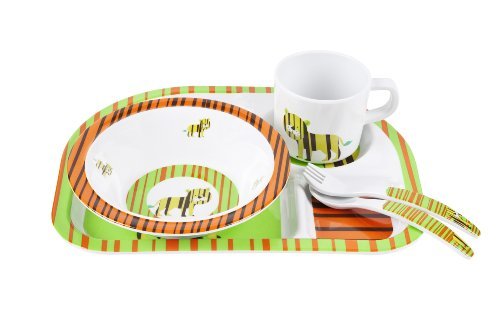 Dishwasher safe;Ages 12+ months;5 piece melamine set;100% Melamine