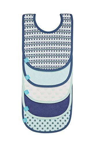 5 pack value bibs;Convenient adjustable, comfortable hook and loop fastene;Keeps kids dry;Washable up to 40? C;Suitable for 3-24 month babies