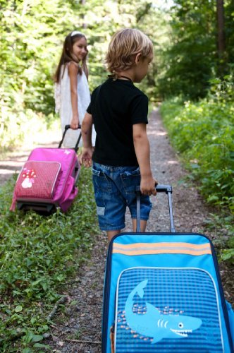 Girls will go on vacation with the Trolley available with a mushroom or fawn design while boys prefer the shark or dino slate style. Clothes can be neatly packed in the suitcase and fixed with the lashing straps. Additional space is offered by the outer zip pocket in front. A separate shoe and laundry bag completes this superb travel set for kids. Thus, the trolleys with all there details including the two-stage heightadjustable handle are a real all round device that will convince children and parents equally.