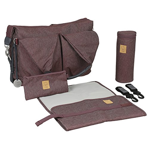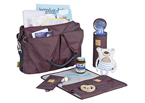 Lassig Green Label Neckline Style Diaper Shoulder Bag with Matching Bottle Holder, Baby Changing Mat/Pad and Stroller Hooks, Black M?lange